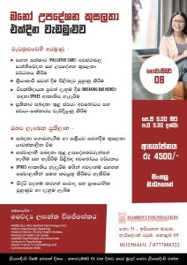 ගැටළුවෙන් මිදීමට අවශ්ය ඕනෑම අයෙකු සඳහා මෙම ප්රතිකාරාත්මක වැඩසටහන සඳහා සහභාගී විය හැකිය වැඩසටහන සඳහා උනන්දුවක් දක්වන ඔබ නම, වයස පහත Whatsapp අංකයට යොමු කරන්න.